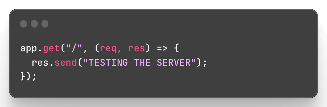 My server should now be running if I type "localhost:3000" into my browser. But I still need to define what the browser should "get", what it needs to respond with, so as a test I'll just send a simple message "TESTING THE SERVER" that should be displayed if I go to "localhost:3000":